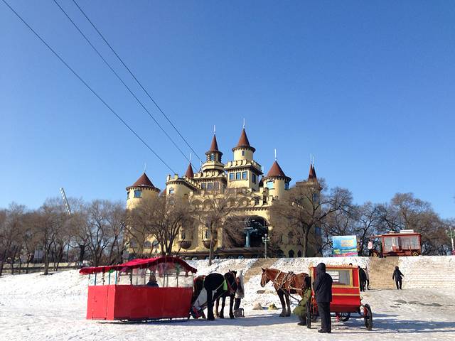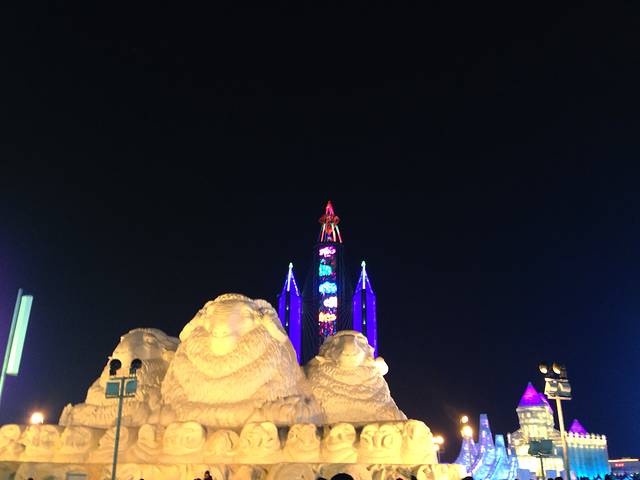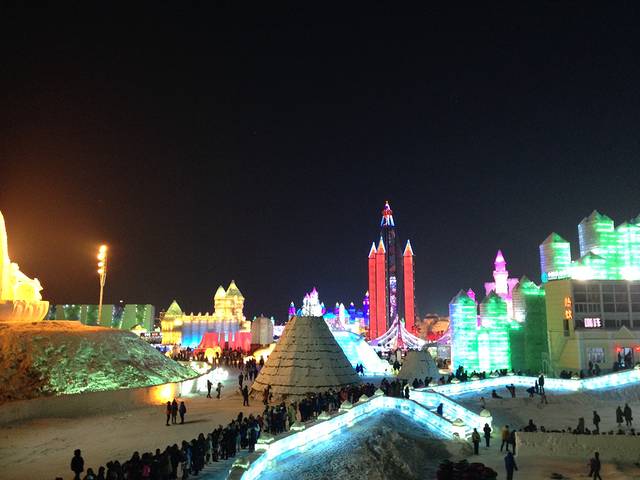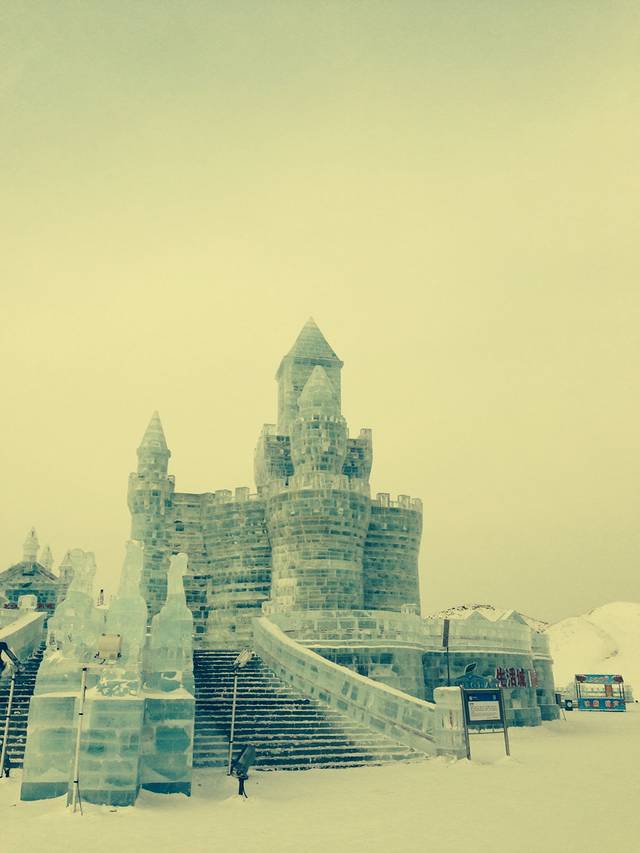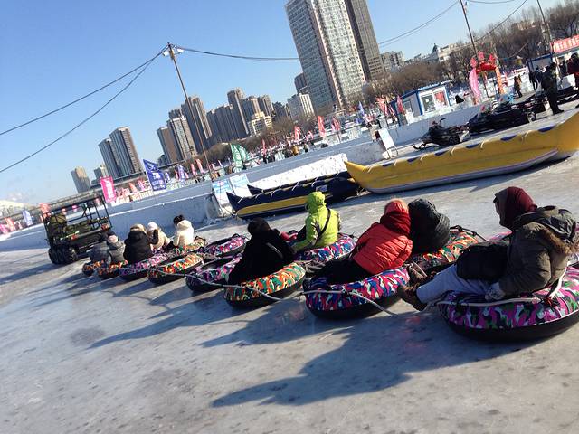 一下火车就直接去大世界啦,因为进去得早 ,人不多,这时候就应该抓紧时间去玩里面的项目,雪上摩托,坦克,滑圈,滑梯,要知道等到中午之后你玩个滑梯都要排一两小时啊! 里面还有滑雪,交个十来块就可以玩了,这样下来很快就玩到四五点天就黑了,这时候该休息下去看夜晚的冰雕了,五点这样人就开始特别多了,所以抓紧时间去观看,拍照吧,否则就是拍人海。了