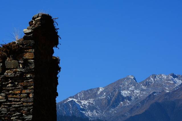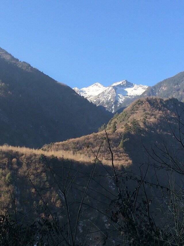 今天我们遇到了好天气,覆盖着白雪的山峰没有隐藏在烟雾中,在阳光下显现出来,反射出来光芒。
