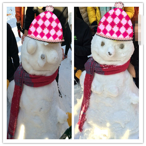 吃过午饭,大家找了一个积雪比较后的地方堆起了雪人。看样子不错吧•