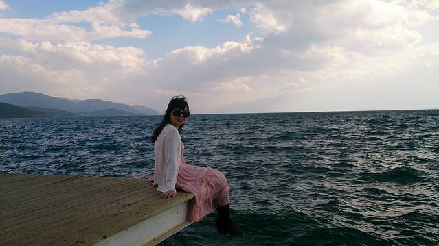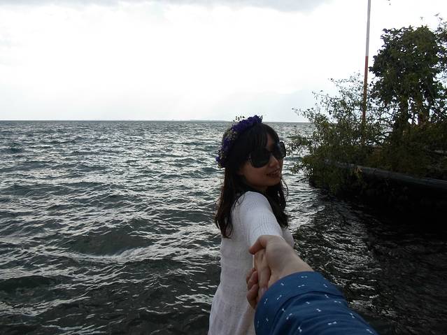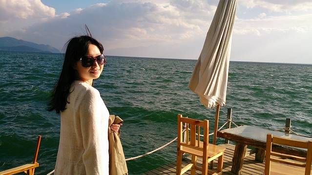 从大理混混沌沌的玩完出发,从风花雪月大酒店门口那里坐上去双廊的车。姑娘一如既往的在我的怀中酣睡。我后来发现我的肩膀手臂犹如一个温暖的小窝,这家伙只要靠上去,一会就迷糊了。在我的怀抱中睡的和小猪一样一样的,又一次错过了环洱海的美景。路途颠簸,我已经忘却了这胳膊的酸麻。快到双廊的时候,小妞醒来了,我们顺着狭窄的小路,一路看着河马的指标,非常不容易的找到爱这生活客栈。双廊是个非常有故事的地方。在那里,我畅怀大笑,我终于会面对镜头也笑的出来了。我看到了大家眼中恬静柔美的女子,也会撒娇耍赖,大家眼中的小女神也有女神经的一面,比如,她的包一直都是在我手中的,可是拍照的时候,只拍到手以上,你是看不到包是在我手中的。大清早饿醒来了,和我一起出去找吃的,饿的够呛,我看到一个眼镜架子,长的可像蒸包子的笼屉了,我说吃包子吗,她回答吃,可是走近一看,居然是一个眼镜架子。然后就一路上在那里哼哼唧唧的过去接着问接着找吃的。由于这件糗事,被笑话了一个学期,总是问我吃包子吗!在岛上看到一个拍婚纱照片的,我看了下女的,说是怀孕了,她说我瞎说,然后,瞎说这个词就成了她的口头禅,无论我说什么,都说我是瞎说,其实,我说的全部是有凭有据的。不相信科学,哎!
