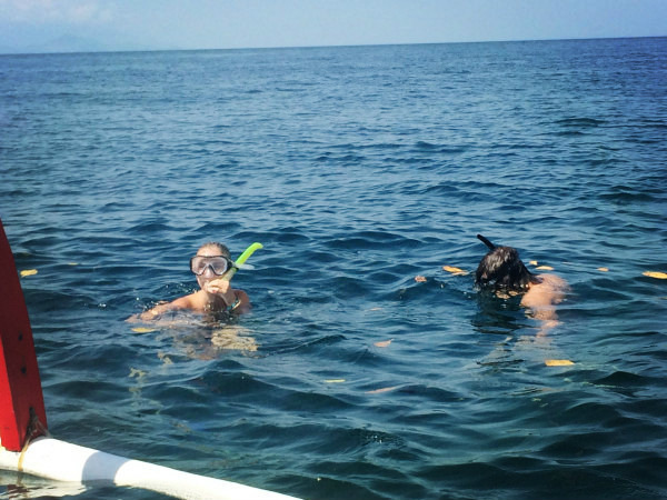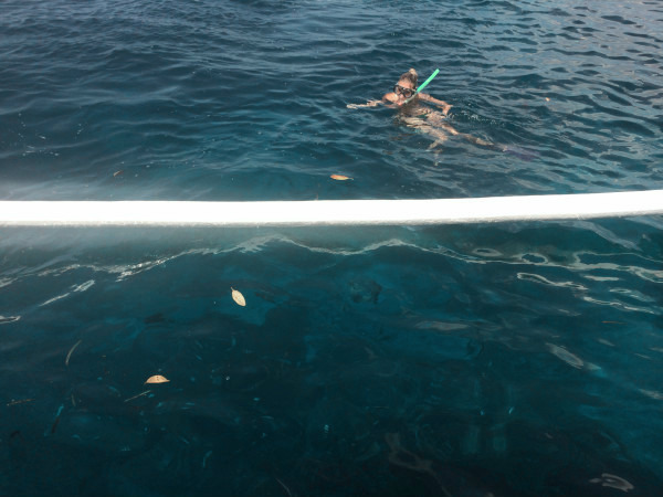 浮潜出发时间是中午12点,因为那个时候的日照最充足,太阳照射到水面上,能够看清楚更多的鱼儿,我们到达集合的海滩,昨天我们来提前看过这个地方,当时还是海滩,不过我们今天集合的时候已经没有滩了,可见这海水涨的真可怕,我们上了一条小船,除了船夫和我们以外,船上还有一对德国情侣。