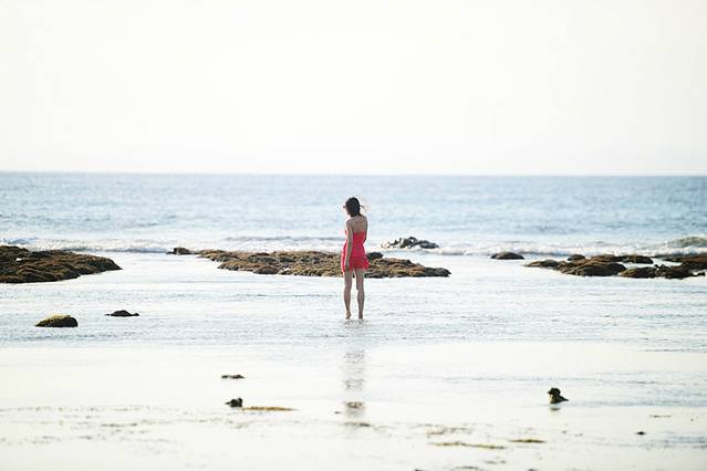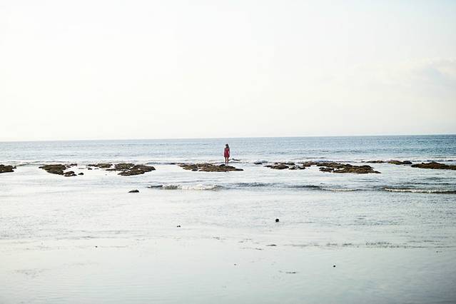 在我走过去之前,以身试“水”的摄影师kevin赤脚走过去探探路,要知道,海滩上坑坑洼洼的都是珊瑚,回来的时候kevin表示脚已挂!!!~