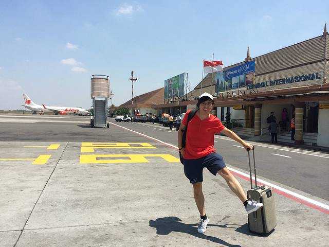 (飞机终于到达日惹,刚下飞机的kevin亢奋的不行,又是夸空气好又是感叹天气优的,根本就安静不下来!!!)