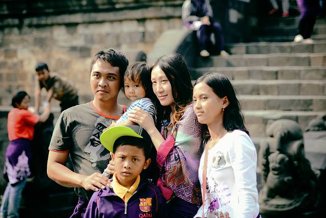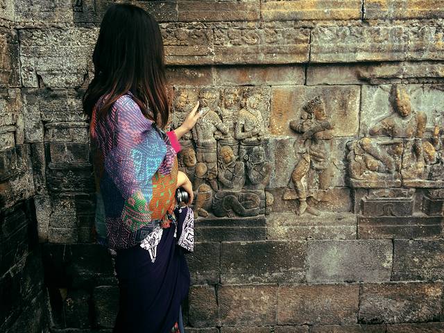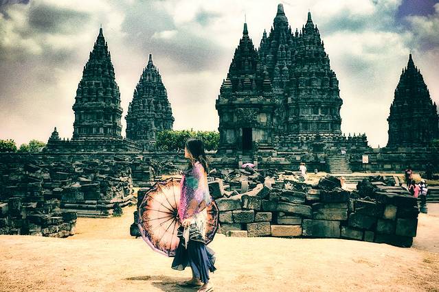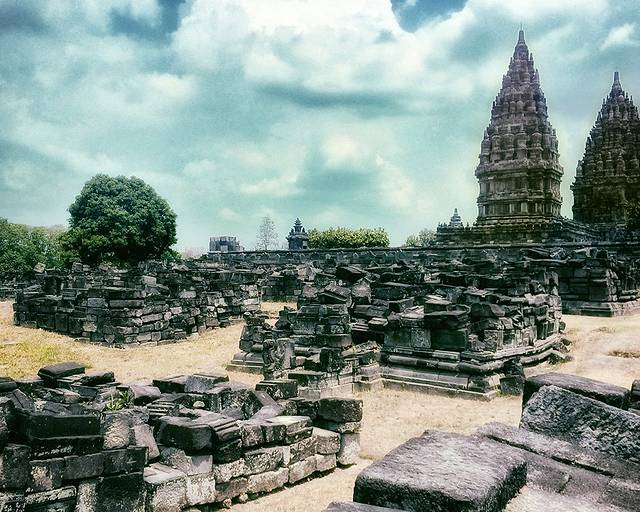 随后是一趟折磨人的车行路线,折返大概100多公里,用了两个小时去了机场附近的普兰巴南。这里曾经是日惹的主要寺庙,车行途中会看到sewu寺等皇家寺庙,但是不是我们的目的地。普兰巴南面积很大,不像婆罗浮屠是一座又大又高的佛塔,而是由接近一千个小的佛塔组成。一路上可以听司机师傅说关于普兰巴南的传说(kEvin吐槽:国外的传说果然都没什么正面意义),然后到地发现1000座寺庙里有接近80%都已经因为地震和火山喷发变成了废墟,印尼政府用当时的原始材料重修了中间几座大的佛塔,游人可以上去参观,佛塔内部供奉着印度教里如湿婆等神明,但是据当地风俗,非印度教信徒还是不要紧到佛塔里面,这是对神的不敬。