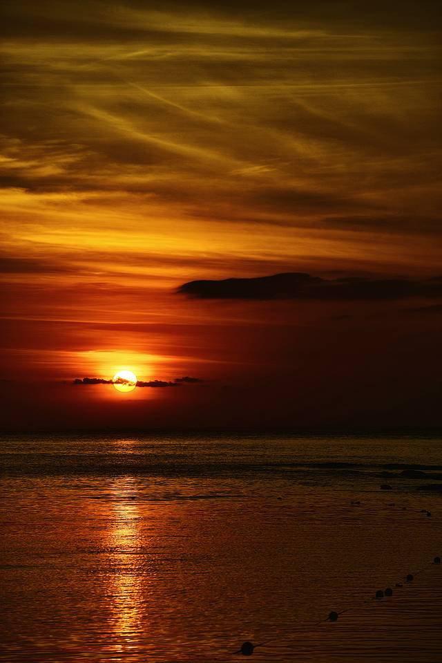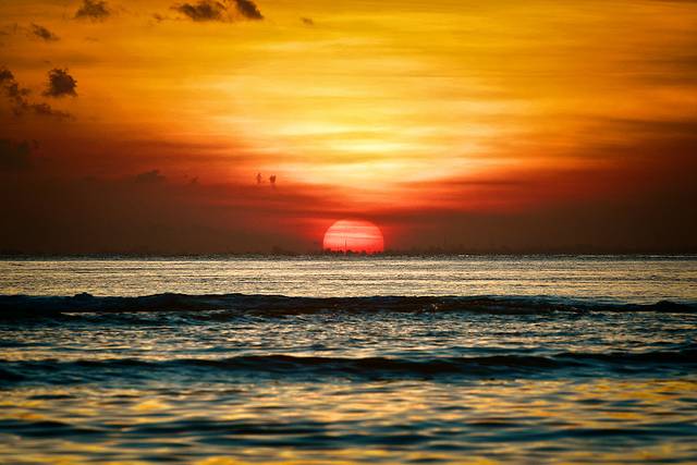 (太阳缓缓下落,慢慢的,消失在海平面)