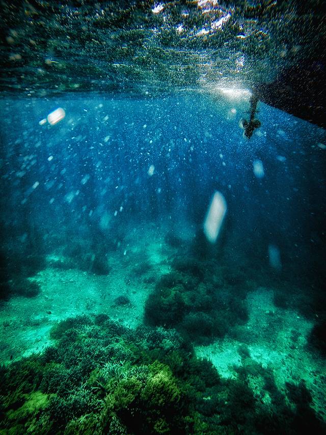 (这是kevin拍摄的海底,别人都是来浮潜的,不过他当然不满足于此,于是不停地折腾)