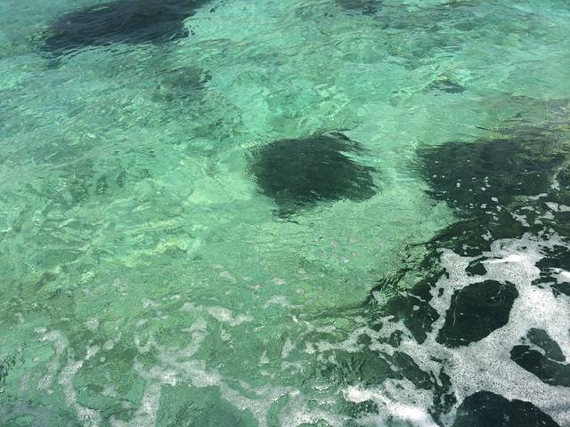 (船夫会在海面上撒一些鱼食,然后,我们就——趴在海面上看)