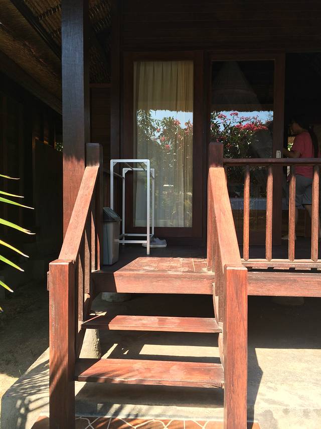 酒店是标准的度假小木屋,设施齐全。不过,貌似蓝梦岛的村民都没有盖被子的习惯,床上只有一张薄薄的床单似的东西,确实有点汗颜。我们向老板借了一个毯子,然后把带来的浴巾全盖在上面,算是安稳的度过了三天。。。(话说我们带的浴巾一路上也算是够忙的);岛上的热水和冷水貌似都是从外面运进来的,黄色的一桶一桶 ,这家旅店的洗澡水也是让人醉了 ,开出来热水特别烫,等你调来调去,热水就没有了 ,在“受”过第一次的教训以后 ,后面的洗澡就是不管多烫,站着往身上拍水都OK,当然,要是你喜欢洗冷水澡就当我没说好了。呵呵后