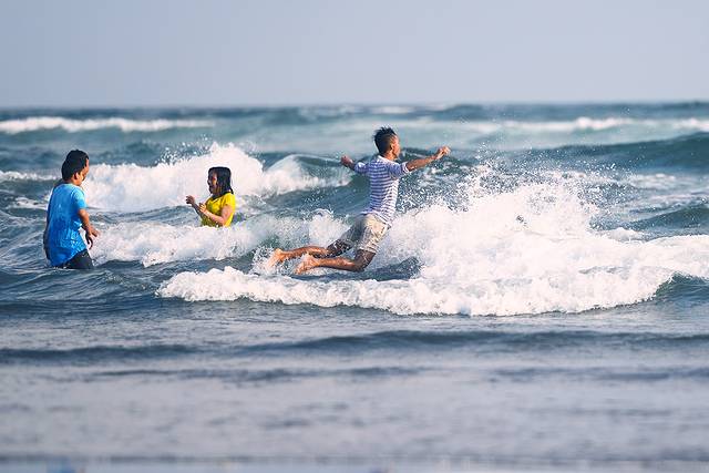 大概在经历了快1个小时的车程之后我们终于看到了Parangtritis海滩,快到海边的时候会有人收门票,大概3000卢比,在海边有专门的停车场,收费是7000卢比。 想想加起来才6块钱,根本不算啥嘛。