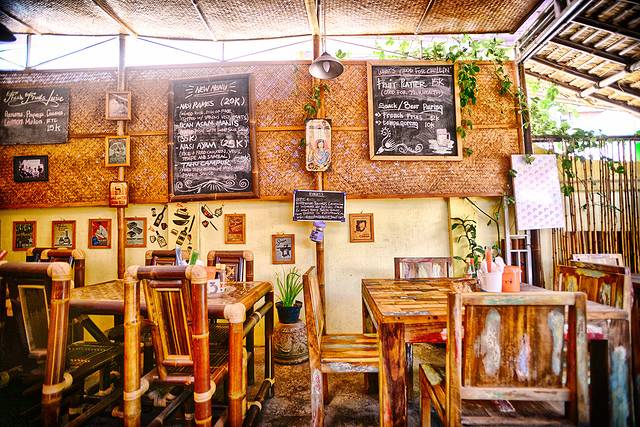 出租车的目的地是巴厘岛东边的萨努尔海滩,这里有很多私人船舶公司。我们到地选了一家叫“丁丁fast boat"的快艇公司,因为他们可以给我们开一张open ticket,包在蓝梦岛上的往返车费和回去机场的车费,这家快艇公司老板满身纹身看着就是个金链汉子,会开很多黄色玩笑,但是人还是很不错的,我们在他们的“连锁餐厅”吃完午饭就开始搭船前往蓝梦岛。