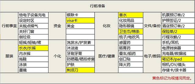 行前准备事宜:(比如:几条飘飘的小裙裙,几套性感感的比基尼...)