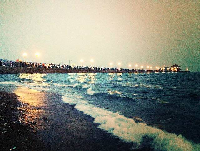 下午栈桥的一号海水浴场,看日落
