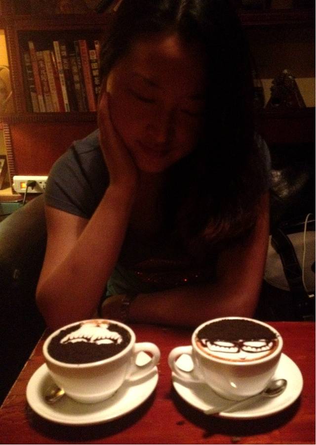 晚上去了可儿咖啡,和娃娃头咖啡