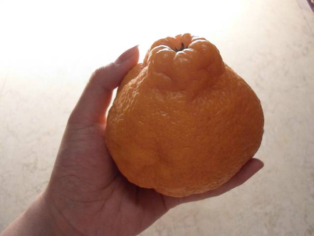 丑橘,长的丑,但是还是蛮甜的!我本来觉得长得丑就不要你买了,小妞说看起来蠢蠢的,买来尝一下,确实比我挑的那个水蜜桃好吃!