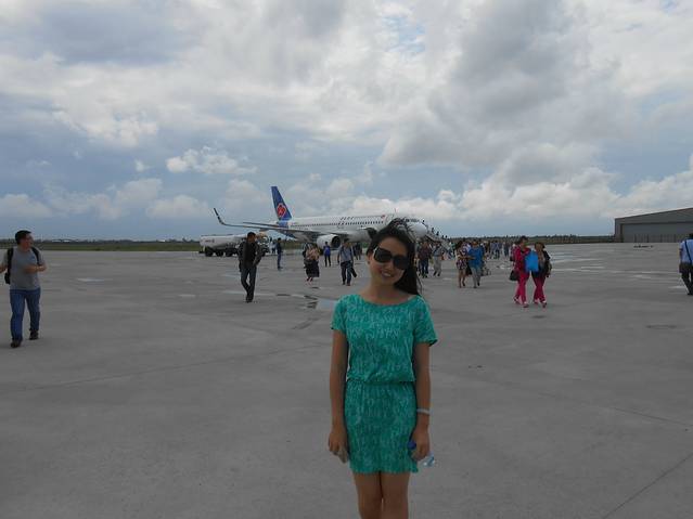 下了飞机,真是风太大了,我俩在哈尔滨穿的是夏装,在这里,得穿秋装,要不冻死了!