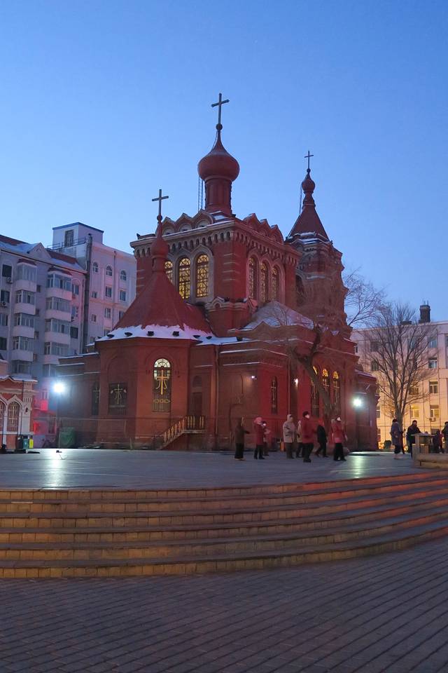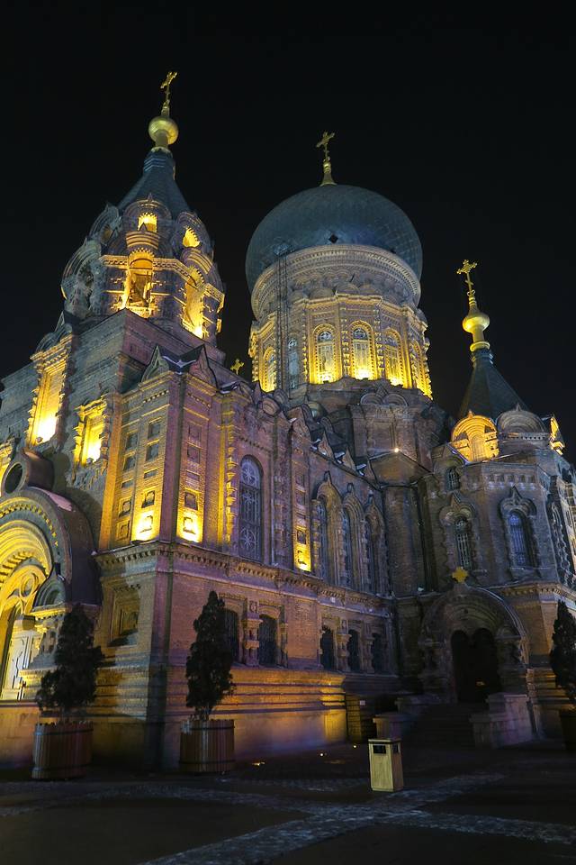 22:00之前去的话,完全可以欣赏到大教堂美丽的夜景,虽然不大,但是确实漂亮,矗立在中央大街,让傍晚寒冷的哈尔滨披上了一层温柔温暖的面纱,宛如含苞待放的花朵,等待明日灿烂的阳光