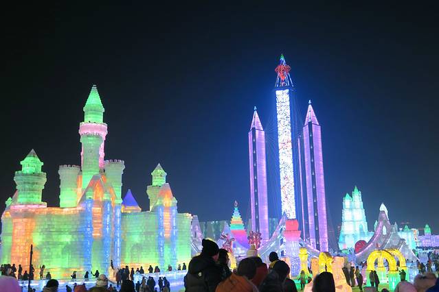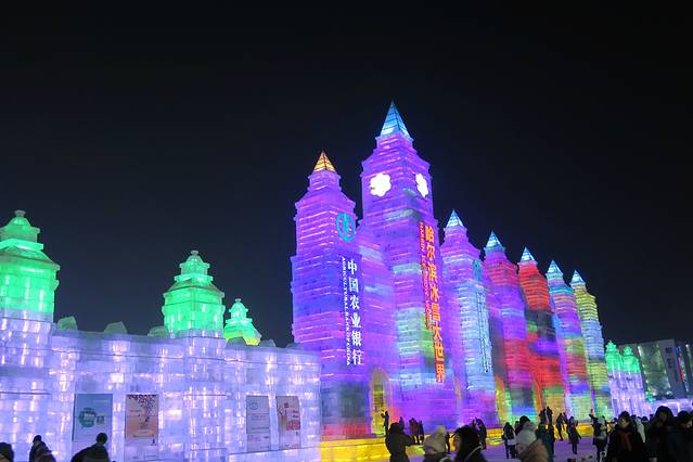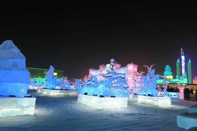 说到哈尔滨,那就不得提一年一届的“冰雪大世界”,坐落在松花江畔,夜幕降临,一尊尊千姿百态的冰雕在LED的映照下,是那么的惟妙惟肖
