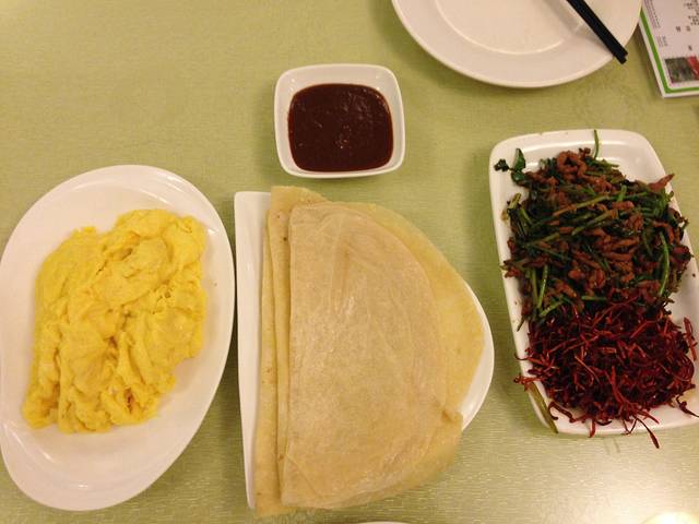 沈阳为什么没有“老昌春饼”……太好吃了,尤其右边那个香辣肉丝,必点,两个女士的量,吃的好撑