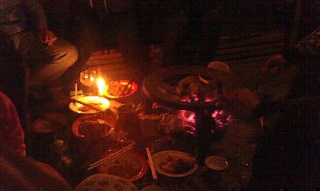 休息了一下于是去思格家吃晚饭 吃晚饭就在他们家的火塘边喝酒