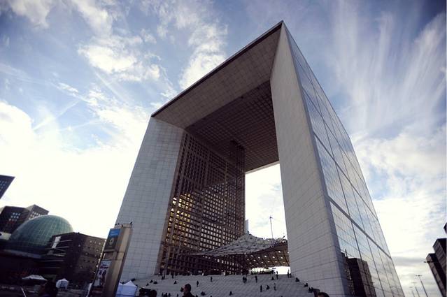 La Defense站的标志建筑是新凯旋门,和凯旋门和另一个小凯旋门建造在一条直线上,这也是法国人的执着吧
