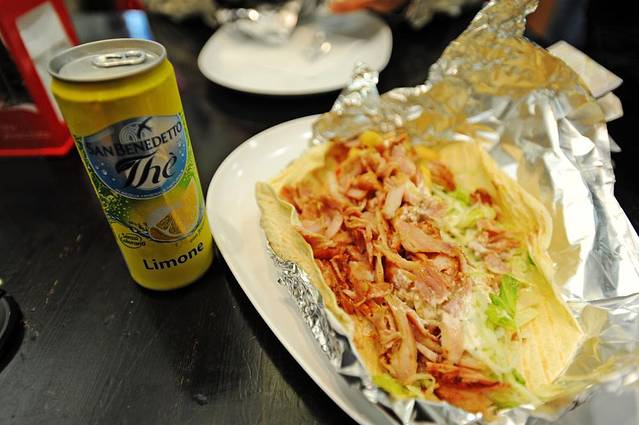这边还有一样叫KEBAB的食物其实不是意大利本地的,应该算土耳其烤肉卷饼,相当于我们的肉夹馍,往饼皮里裹上蔬菜和一大坨烤肉卷成卷饼,然后放进烤箱烤就能吃了,足量的一人份连阿能都能吃到饱,在意大利的几天阿能每次看到KEBAB都要来一个解馋