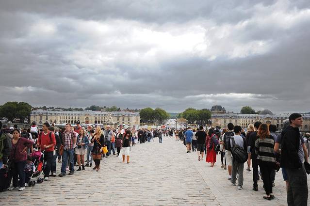 RER C线非常复杂,快车慢车和方向全都不同,在我和阿能研究了半天都没有头绪的时候,有一个美国老太太上来问我们,是不是要去凡尔赛宫,得知我们的目的地是一样的时候,她让我们跟着她就行了,她认识一条更近的换乘路线,因为她已经是第二次去了