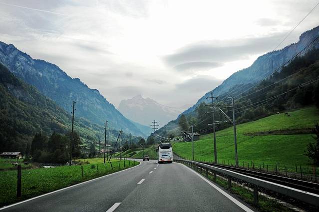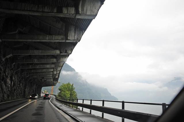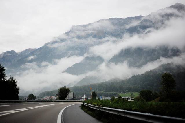 去琉森的这一天山里大雾,又要开过那段绕得和毛线球一样的山路,阿能格外小心谨慎