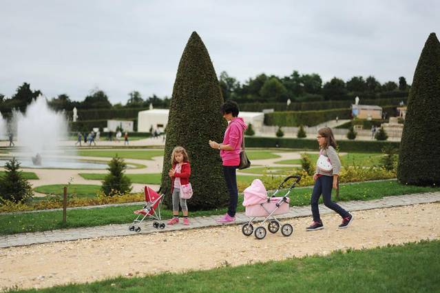 这次老太太是和她的老伴带着他们的孙女一块儿去凡尔赛宫,相比起开朗的外婆,孙女一路始终拿着本书低头看着,带着点这个年纪特有的羞涩,偶尔会抬头回应我们两句,然后又腼腆的低下头去