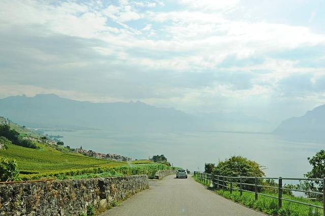 一路沿湖开欣赏着美景,一会儿就能到拉沃了,这边最有名的就是拉沃葡萄园梯田,所以肯定盛产葡萄酒~左右两边山坡上绿油油的就是清甜新鲜的青葡萄了
