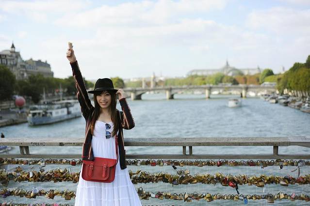 太阳晒够了,重新上路,一路吃着安徒生双球冰激凌沿着塞纳河走到了有名的锁桥