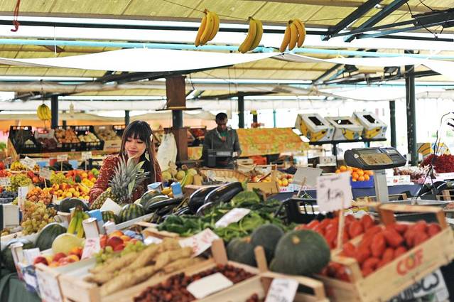 哈哈,偷尝了几颗葡萄,超级新鲜超级甜的,放进嘴里葡萄汁就一股脑地崩出来了~不过我们已经在超市里买了好几串葡萄了,这边的水果也很便宜