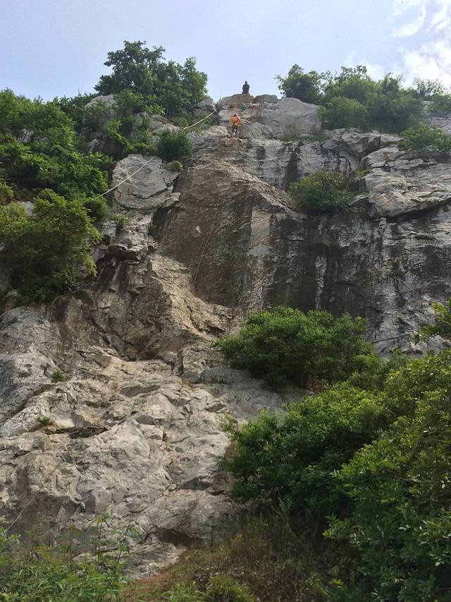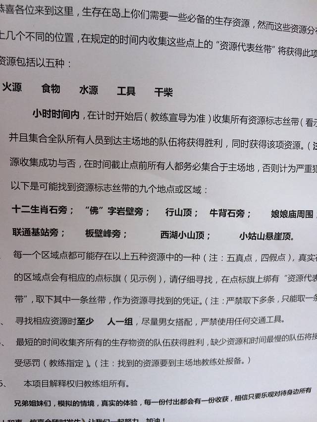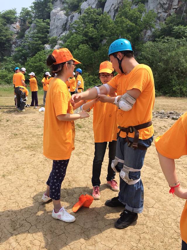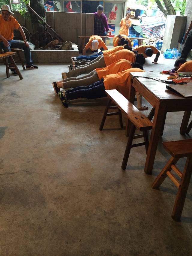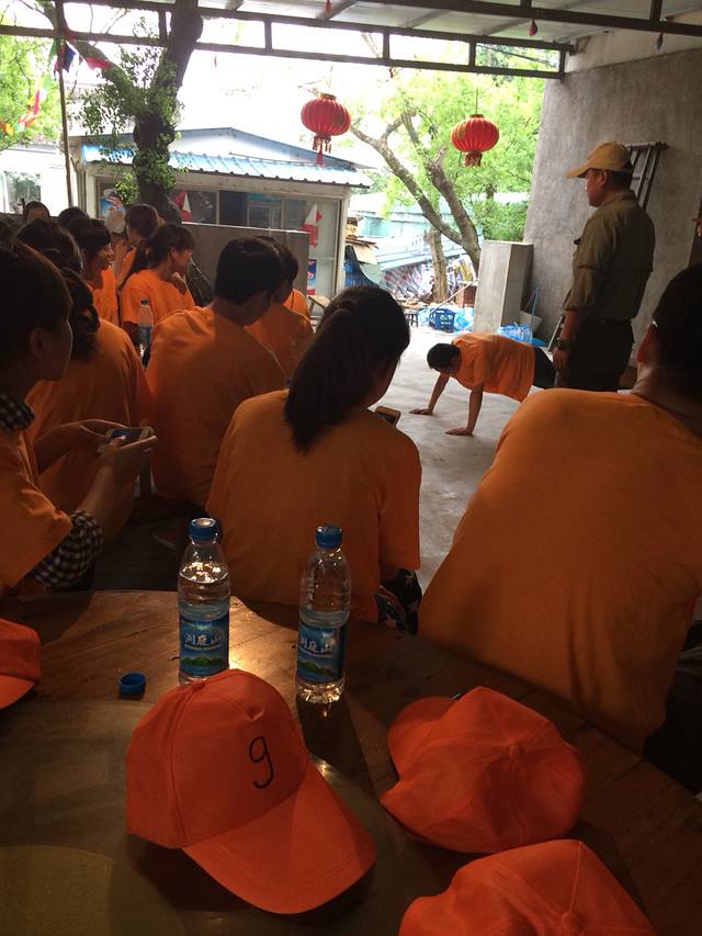 第二天六点半就起来拉练了,走了三十公里还是小跑啊,对于我们这种久坐办公室的那是要有多大的毅力啊!到最后真的是自己都不知道自己是自己给坚持下来的八点半前全都回到农家了,难道真是再为了那顿早饭而拼吗,也许是为了团队的荣誉吧!吃过早饭来到悬崖边做我们此次拓展最有挑战性的悬崖极速下滑五十米,刚开始,不仅是我们女同胞连男同胞都不敢去,吓的腿都软了,但是既来之,肯定要上去挑战的,当然肯定有吓的直叫一直叫下来的!还好所幸我们是都做下来了!下午我们在室内做了一个游戏,每个人都有一张纸条,但是不能开口说话,要把纸条上的意思表达给队长,其他人连手都不能碰到积木,只能比划你纸条上的信息,这个真的是相当的高难度,刚开始拆了搭,搭了拆,时间一个小时,但是教练说只有百分之十的团可以完成,而我们团队,在刚开始的一阵忙乱后,由队长改变策略,制定方案,比划纸上有第一层的开始举手然后一个一个比划,最终我们也是在最后关头完成了任务!