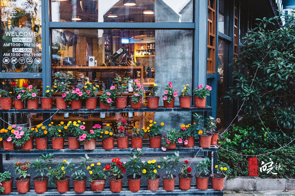 某个咖啡馆前,好洋气的一排盆栽,符合楼主文艺的审美风格