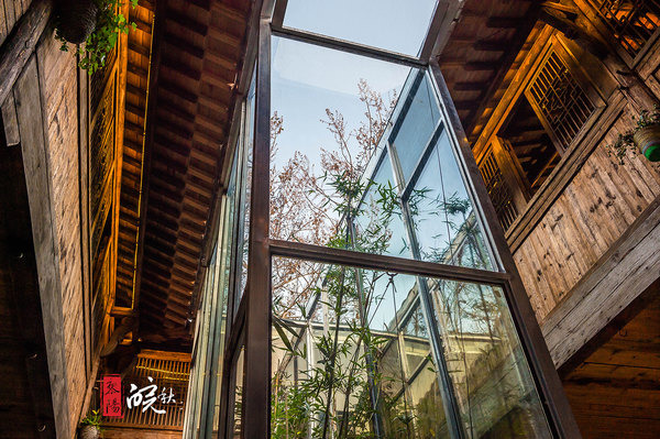 由于是老宅改建,为了保证采光,老板在天井打造了一处玻璃房