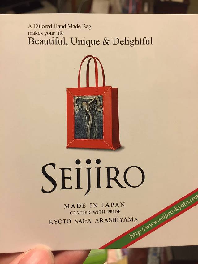 在京都天龙寺附近遇到了这样一间皮具店:里面全部的包包都是店主自己设计并全手工制作的。店员+工匠就他一个人。从配色、皮料到内袋,他都细细地用不是很流畅的英语向我们讲解。