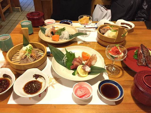 我们基本上就是走到哪吃到哪的状态,但就真的没遇过难吃的。选择上我们基本都挑远离景点的、里面有2桌以上本地人在吃饭的店。后面会说,日本的景点也有通病,吃饭又贵出品也不怎么好就是其中一个通病,所以我们都宁愿坚持一下离开景点再吃。点菜完全不用怕,还是那句有汉字!鳗、牛、豚、卵(鸡蛋)、天婦羅、糆、定食(套餐)你全部都能看懂,而且点定食就对了都搭配得很好。