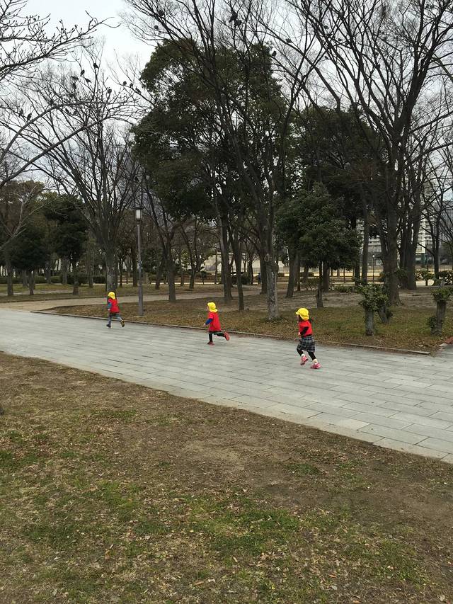 偶遇幼儿园小朋友在大阪城上体育课