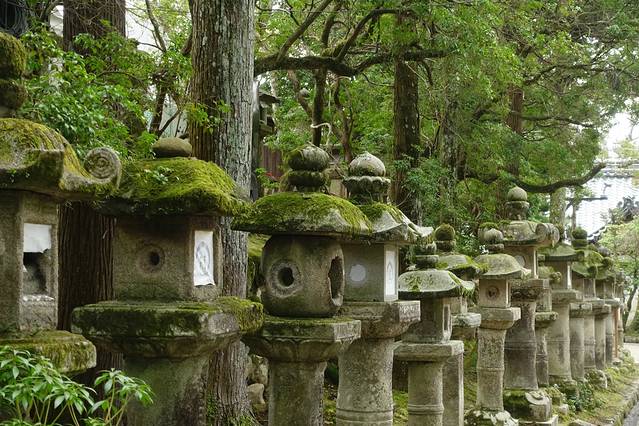 神社里这种灯是很常见的,融合在大自然中,静谧而庄严的感觉