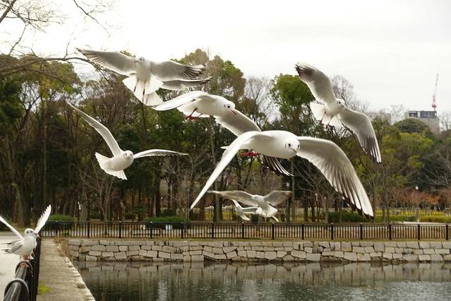 再说大阪,真的就是一个大都市。倒是在大阪城看到了日本平常人生活的一些片段,例如老爷爷奶奶带着单反去拍海鸥,例如睡在椅子上的流浪汉,例如进行户外运动的幼儿园小朋友和带全妆上体育课的女老师们,还有吉野家里吃牛井饭的上班族。我没留半天就出发去了温泉旅馆了,所以介绍不了多少。