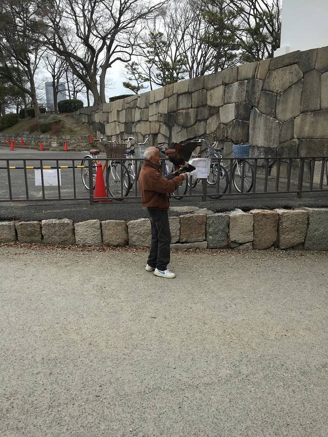 老伯伯在大阪城遛鹰