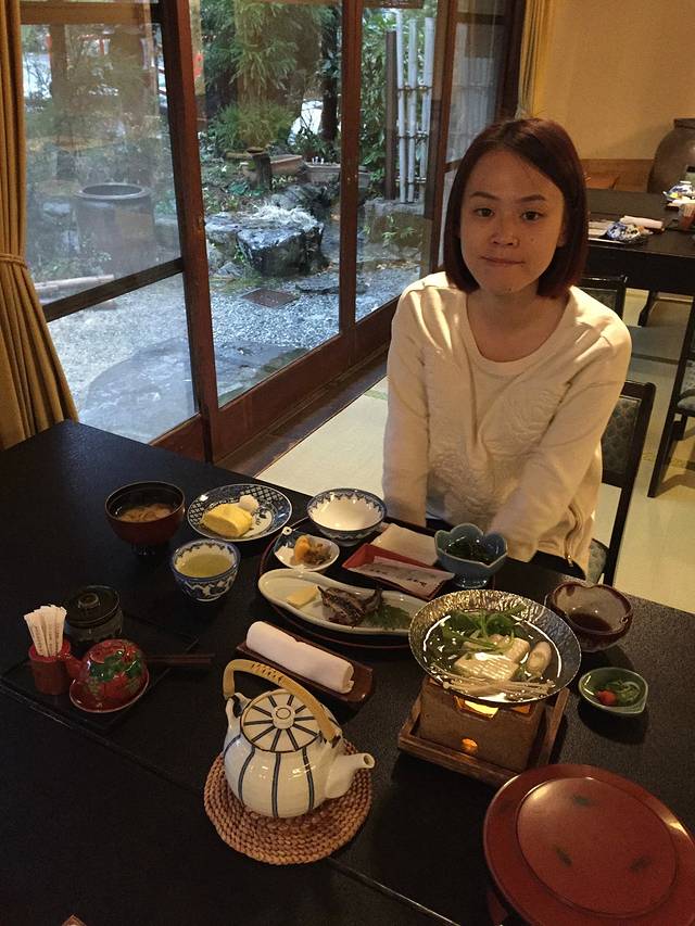 坐了快50分钟的火车,下车的时候感觉就是个鸟不拉屎的地方,车站也比较破旧也很小,但没想到里面的酒店和园林竟然这么精致,一进门5、6个穿和服的服务员就冲出来帮我们拿行李(英文超级溜),一个大箱子我都提不动只能推的,一个女的就这么帮我拿上二楼了(楼梯),当时我们就被这个阵势惊呆了!