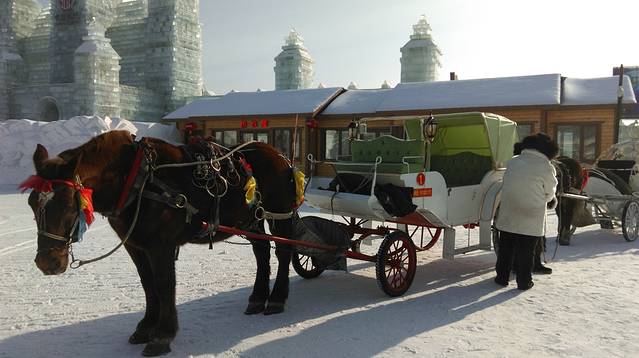 因为住在主要行程的景点附近,全线都是靠走路的。只是上冰雪大世界的时候在酒店对面坐的13路区间车直达1元。(回来后很感慨,旅游一定要住在景点附近,好方便哦)