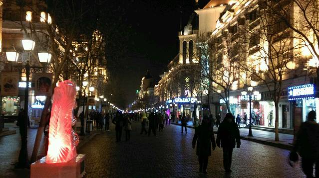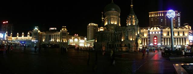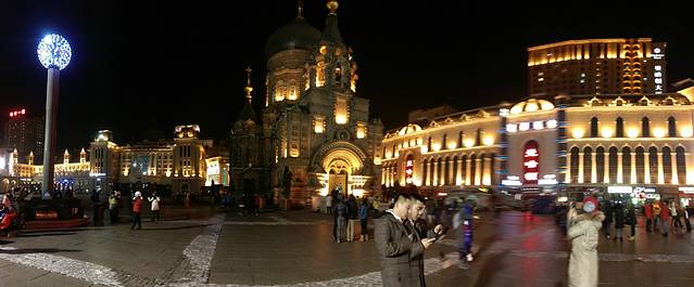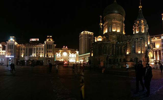 灯光底下的建筑金碧辉煌,随处可见的冰雕,独具特色的石块马路——我不想做历史学家,我不想恶补什么建筑的历史,我只感受我所看到的震撼,那种发自心底的美妙感觉!