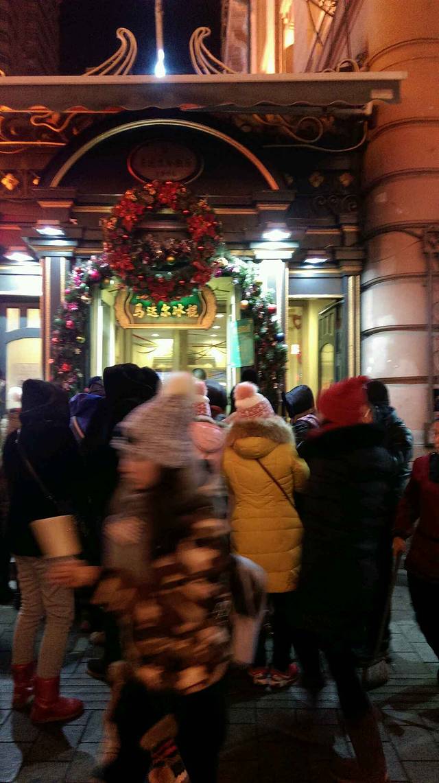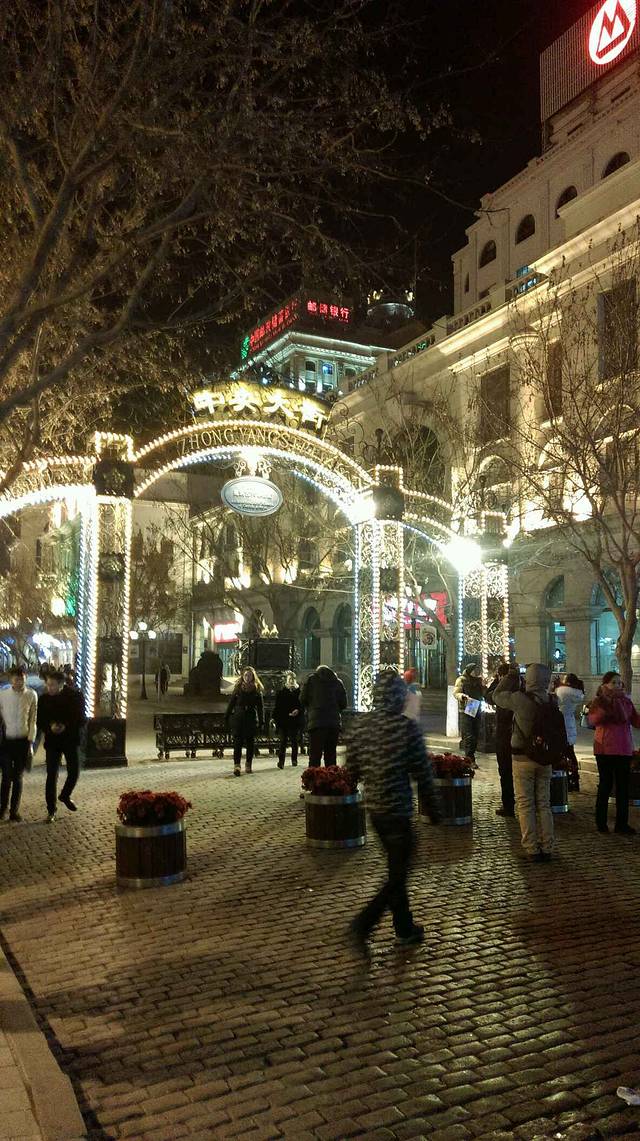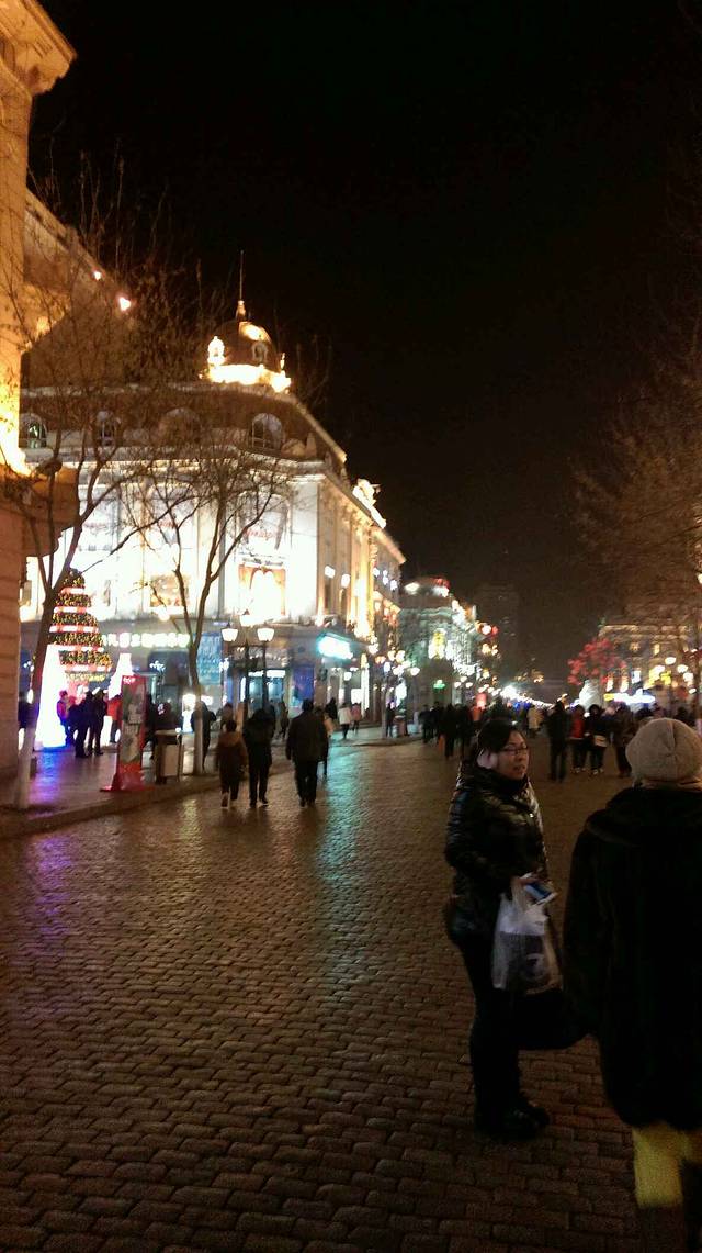 滑完雪坐上大巴返程,一天的户外活动加上昨天一夜没睡觉感觉有点累,3个多小时的回程闭着眼一会儿就到了市区。正好停在了中央大街附近,导游说逛逛街吃个饭再回酒店吧,晚上的哈尔滨很美!