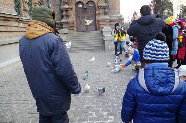 连续两天都是看的教堂的夜景,披着夜色,枕着灯光,那叫一个美啊;白天,是另一种叫做异域,叫做气势!看到了不怕人的鸽子盘旋在游客的头顶之上,与它们做了一个零距离接触,喜欢\(^o^)/~
