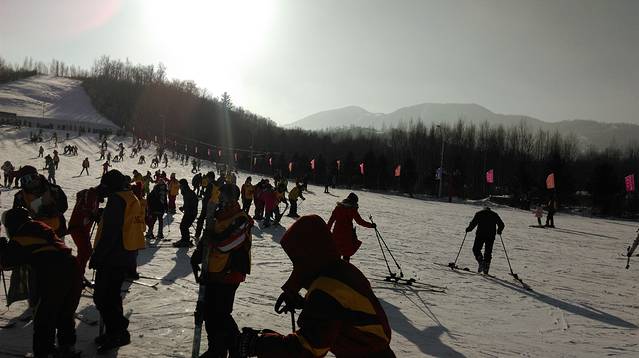 简单的吃过团餐后(真的是很难吃),终于可以去感受滑雪了,这是今天来的真正目的!还没开始,就有好多工作人员来追着问,要不要请教练,200元一位,两个小时。想想自己就是过来体验一下,又不要学成多专业,所以就没请,立马周边的人就冷淡了很多… 体验后的感受就是没人教确实找不到重点,而且有种怕摔的恐惧,但是摔过以后就不怕了,呵呵,我是越摔越勇,那种感觉挺奇妙的。两个小时很快就过去了。