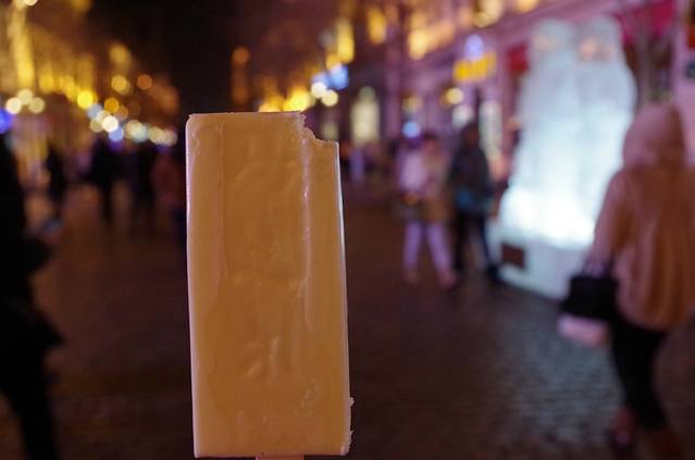 需要排队买的马迭尔冰棍,5元一支。奶味很浓,对得起网上对它的评论。