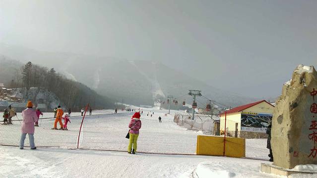 因为之前订下了去亚布力滑雪一日游的团购(77元,含午餐,好汉坡2个小时滑雪),约好的时间是早上4:40,而酒店入住只能是早上6点之后,也就是,如果我想办入住的话,1点-4点40这四个小时就要算一天,好不划算啊,所以,我决定这四个小时坐在大厅等。 4点40分,旅行社准时到达酒店,亚布力滑雪一日游开始!因为哈尔滨到亚布力需要3个半小时,所以上车后就可以睡觉啦,吼吼。。。可是...还不到2个小时,导游就开始介绍景点,然后就做各种自费项目的介绍、推荐(租雪服100元,眼镜80元,马拉爬犁220元,高山缆车160元,小火车260元,雪圈滑梯150元(记不清了,就是坐着游泳圈从不高的小坡上滑下)...还有好几项但记不清了,只记得一共8项1210元,优惠价1010元。我只报名租雪服+马拉爬犁一共320元。