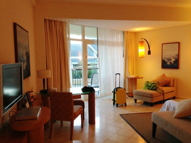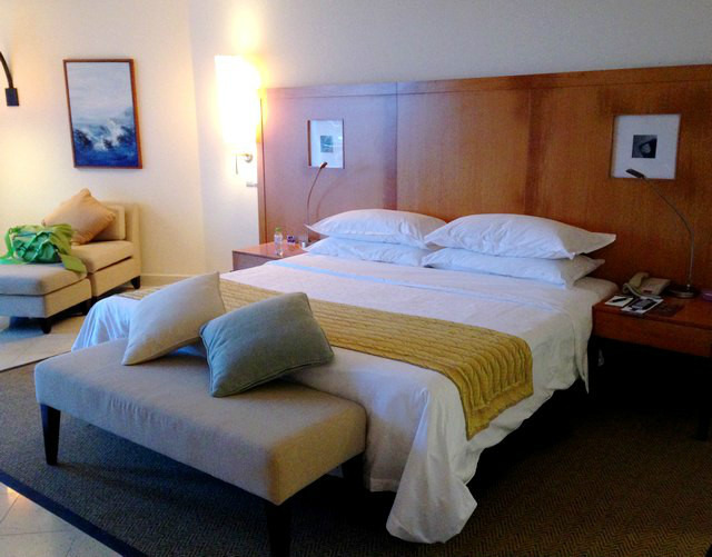 拍照直到晚上7点多才结束,摄影师宣布收工的瞬间,我和刘总都松了口气,终于完成啦!换好衣服,到瑞吉的前台取了寄存的行李,转战喜来登。因为之前看到有人说喜来登的沙滩好,所以我在携程上订了两晚。喜来登和瑞吉同属喜达屋酒店集团旗下,应该也不错。