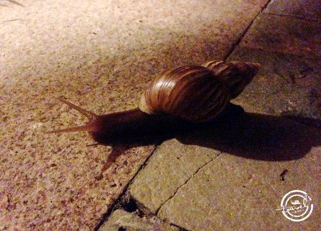 夜幕中,酒店的花园仿佛变成了动物王国。地上爬满了蜗牛,以至于我们不得不踮起脚尖小心翼翼的走,生怕一不小心踩到它们。